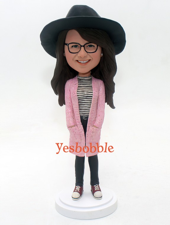Custom Bobblehead Girl in Black Jeans and red Converse