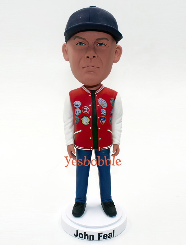 Custom Bobblehead With Red Varsity Jacket