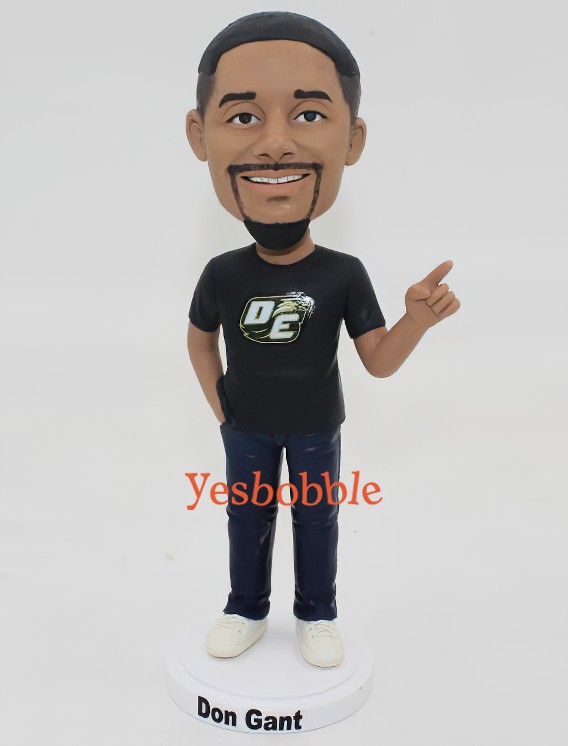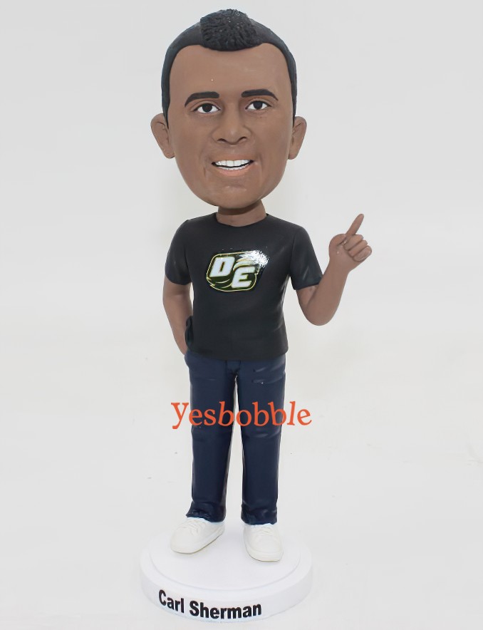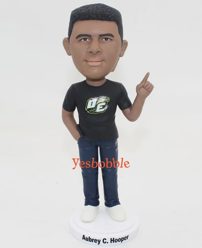 Man in Jeans Holding Index Finger Up Custom Bobblehead