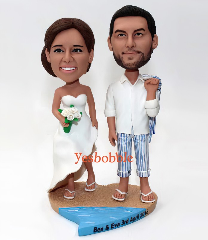 Wedding Cake Topper, Beach Couple Bobblehead